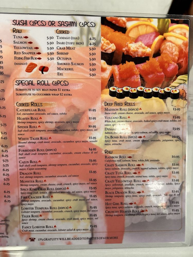 "Mad Seafood Boiler" is a Cajun/Creole seafood restaurant located in Madison, WI. This casual dining spot offers a wide range of dishes suitable for different dietary preferences including many vegetarian options. The menu features appetizers like Cajun Fries, Crab Rangoon, and Fried Calamari, as well as sushi options like Salmon Tartar and Yellowtail Jalapeno. The restaurant also serves a comforting Miso Soup perfect for starting your meal. With its relaxed atmosphere and ample amenities like outdoor seating and wheelchair accessibility, "Mad Seafood Boiler" is a great spot for a casual lunch or dinner. The diverse menu and welcoming ambiance make this restaurant a must-visit for seafood lovers in Madison.
